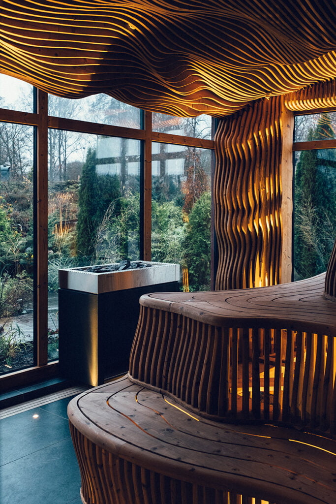 Sinnenas Spa på Ästad Vingård i Tvååker, blandar intensiva upplevelser med stillsamt lugn. Inspirationen är hämtad från naturreservaten Åkulla Bokskogar som finns omkring gården. Autentiska ljud har spelats in i skogarna och de unika dofterna, som skapats tillsammans med doftexperter, är inspirerade av den lokala naturen.