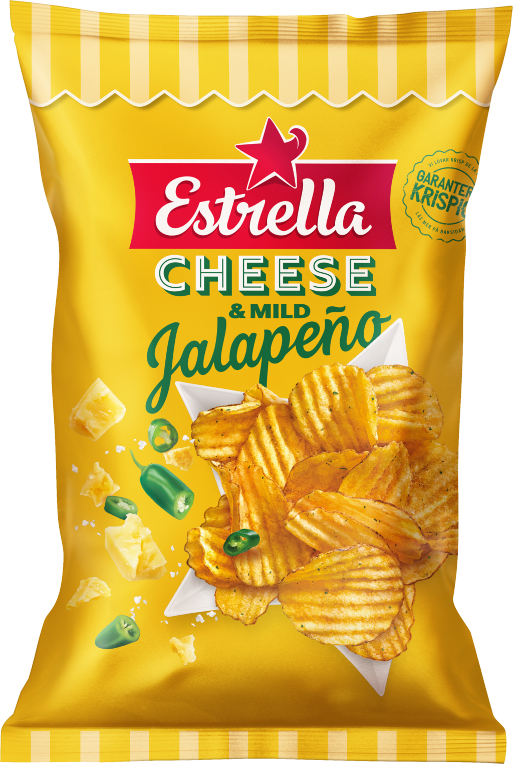 Chips med smak av ost och jalapeño var en av finalisterna i Estrellas kampanj Chipsvalet 2022 som slutade på en andraplats efter vinnaren Brynt Smör & Chili. Nu är det dags för silvermedaljören att ta plats i butikshyllorna.