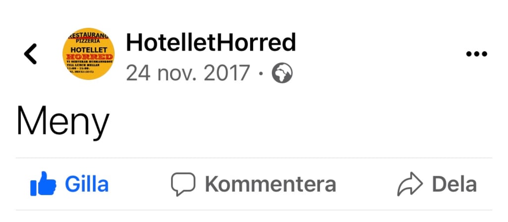 Det finns tyvärr inget hotell i Horred, men det finns ett ställe som heter Hotellet. Fast det är en pizzeria med riktigt god pizza. Under en sådan här resa är det av yttersta vikt att prioritera, så man hinner med allt det bästa. Och då är Hotellet ett självklart stopp.