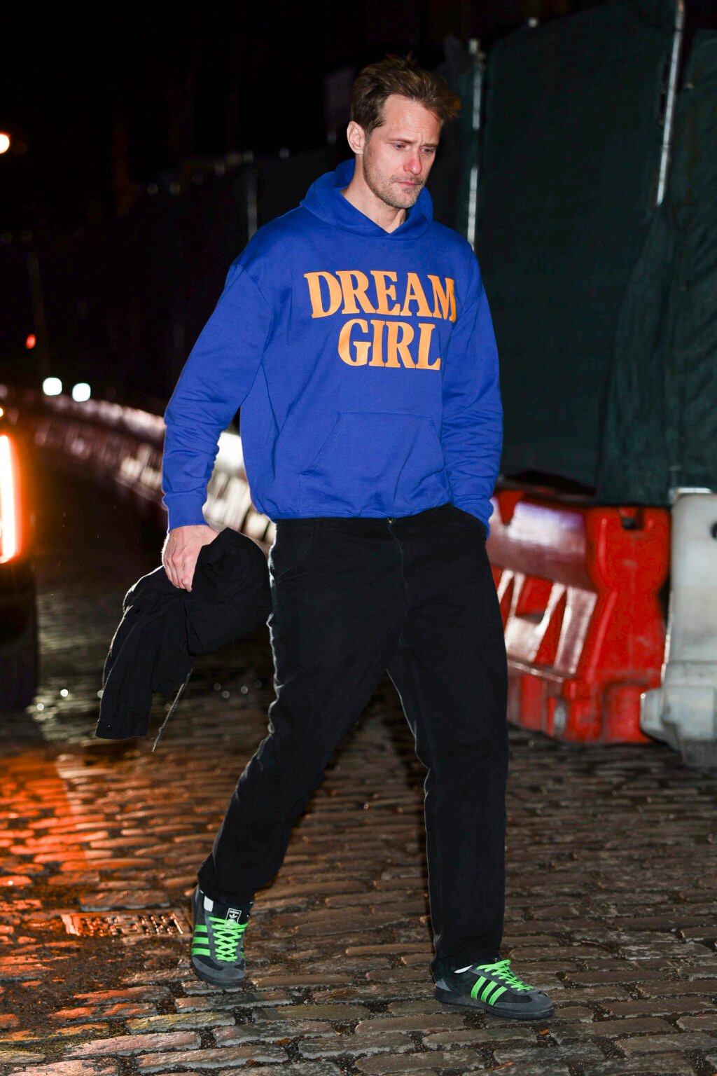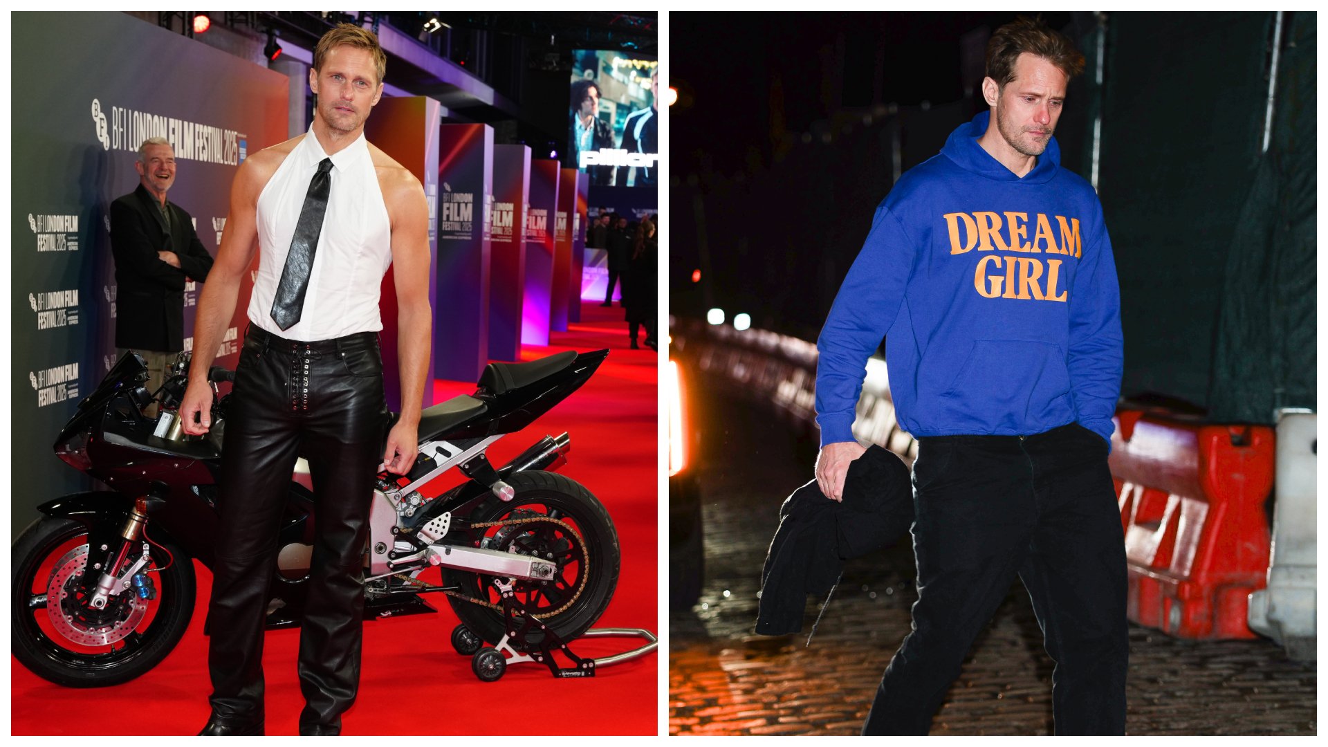 Under lanseringen av filmen Pillion – en romantisk komedi i BDSM-miljö – har Skarsgård klätt sig ironiskt i bara axlar, höga skinnstövlar från Saint Laurent och andra överdrivna detaljer från queervärlden.