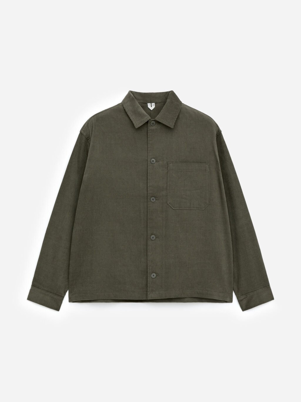 Avslappnad overshirt i bomullsmanchester med inslag av linne. Kommer i grönt och svart och finns även att kombinera med ett par byxor i samma material.