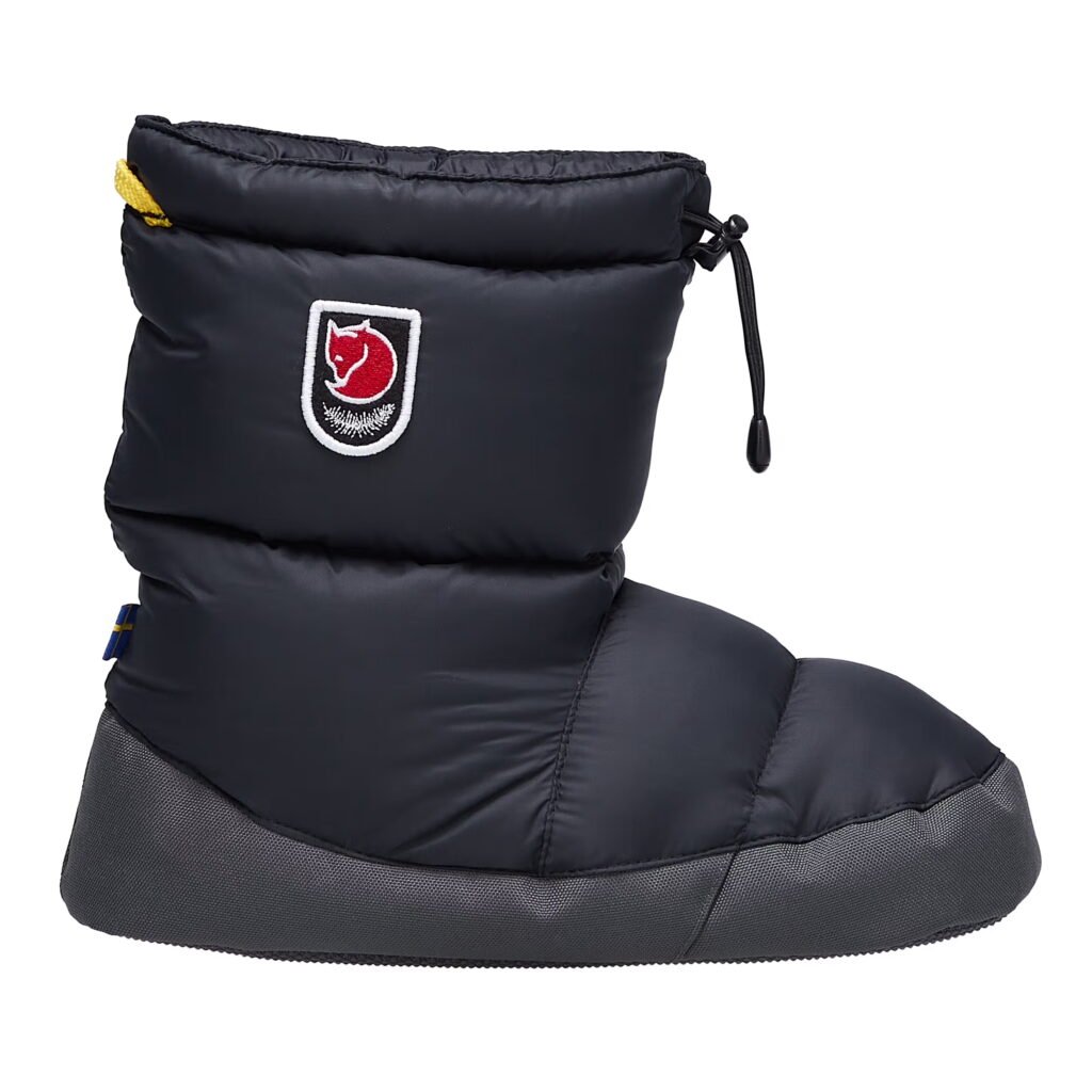 Frusen inomhus? Fjällrävens lätta och packbara dunskor består av 700 fillpower gåsdun och kommer garanterat värma upp dina kalla fötter när du kommit in efter en dag i snön.
