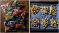 Sex påsar av våra vanligaste, oräfflade fryspommes köptes in och tillredes med två olika tillagningsmetoder: genom fritering och ugnsbakning. Sex mycket erfarna pommesälskare (det vill säga jag och min sambo samt tonårsbarn) genomförde testet blint vilket gjorde att vi enkelt kunde jämföra sorterna utan att påverkas av eventuella favoriter och pris.