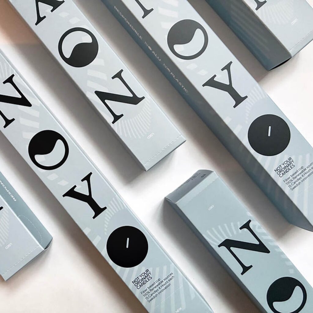 NOYO:s lösning: miljövänliga värmeljus tillverkade av förnybart rapsvax och en fiberkopp av cellulosa – helt fri från aluminium. Koppen är behandlad med en patenterad, brandsäker beläggning, skyddad av svenskt patent, vilket gör värmeljuset säkert att använda utan metall. Genom att ersätta aluminium med fiberbaserade material minskar både metallavfall och klimatpåverkan, och när ljuset har brunnit ut kan koppen sorteras som papper.