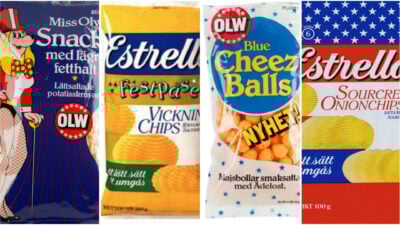 Den svenska snackskulturen har länge varit präglad av stor experimentlusta. Titta bara på de här ljuvliga förpackningarna från gångna decennier. Så här kunde fredagsmyset se ut förr i tiden.