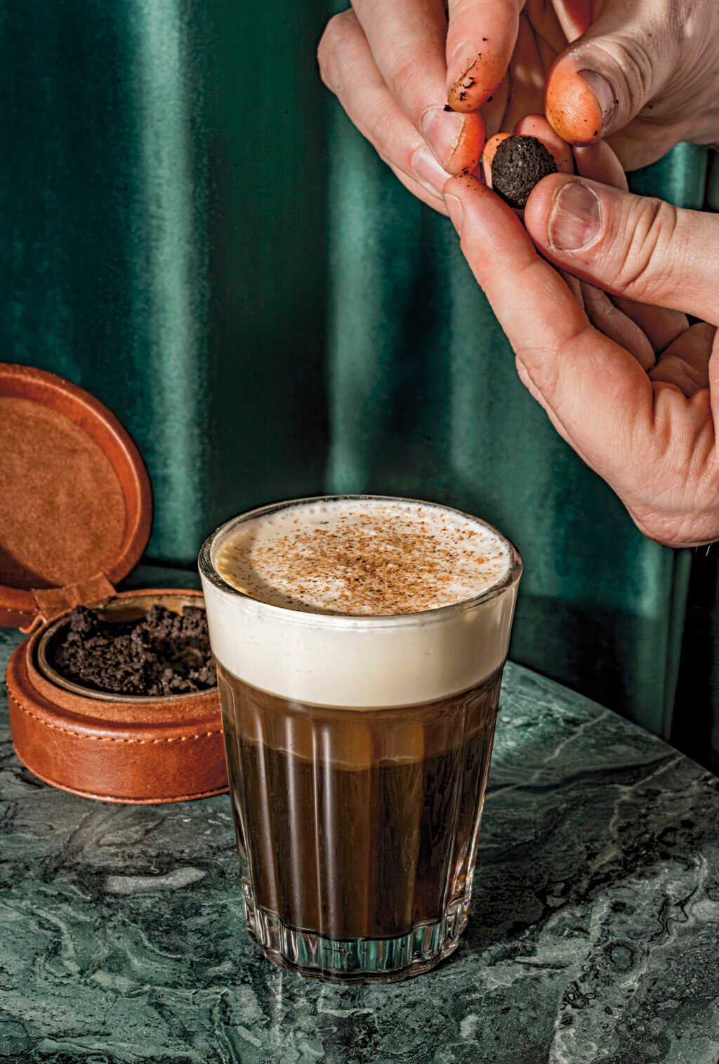 Häll i whisky, ölreduktion och kaffe. Skikta grädden 1 ó cm så du får en härlig krona. Toppa med salt och riv muskot över. Denna får ej stå och vänta under tiden någon ska berätta om sin kraschade relation. Håll käften och drick, sen kan du berätta hur du lyckats klanta till det med kärleken igen.