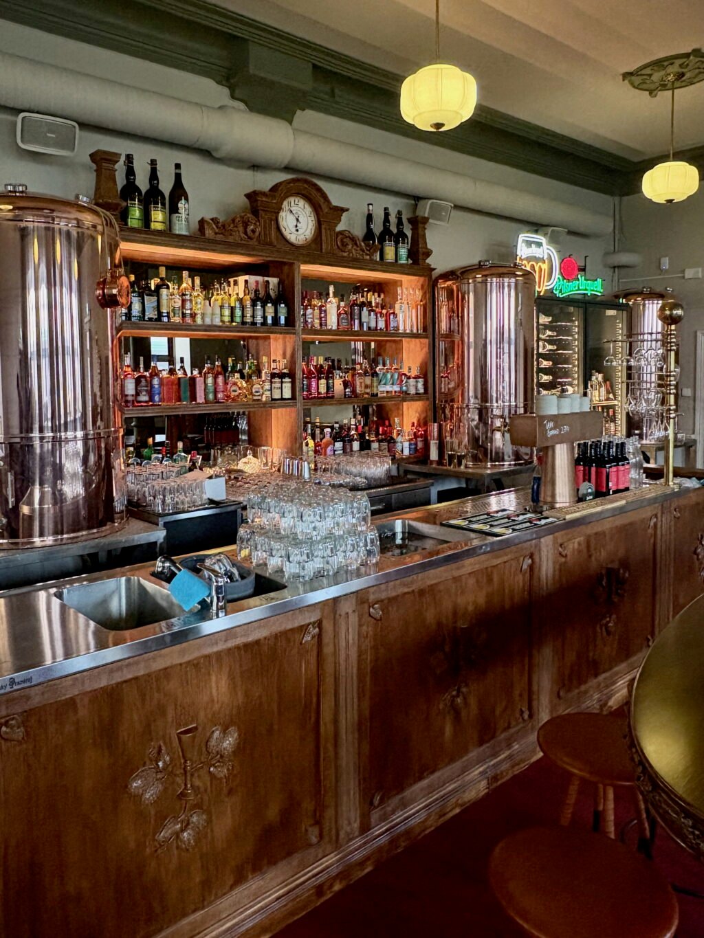 Trogna besökare av de andra två rustika restaurangerna kommer känna igen sig. Menyn blir densamma med traditionella smörrebröd, men i den nya restaurangen kommer även en stående Wienerschnitzel att serveras. Den för Två Små Svin så klassiska tjeckiska pilsnern återkommer även den, men nu finns även en större bar med extra fokus på tjeckiska spritsorter.