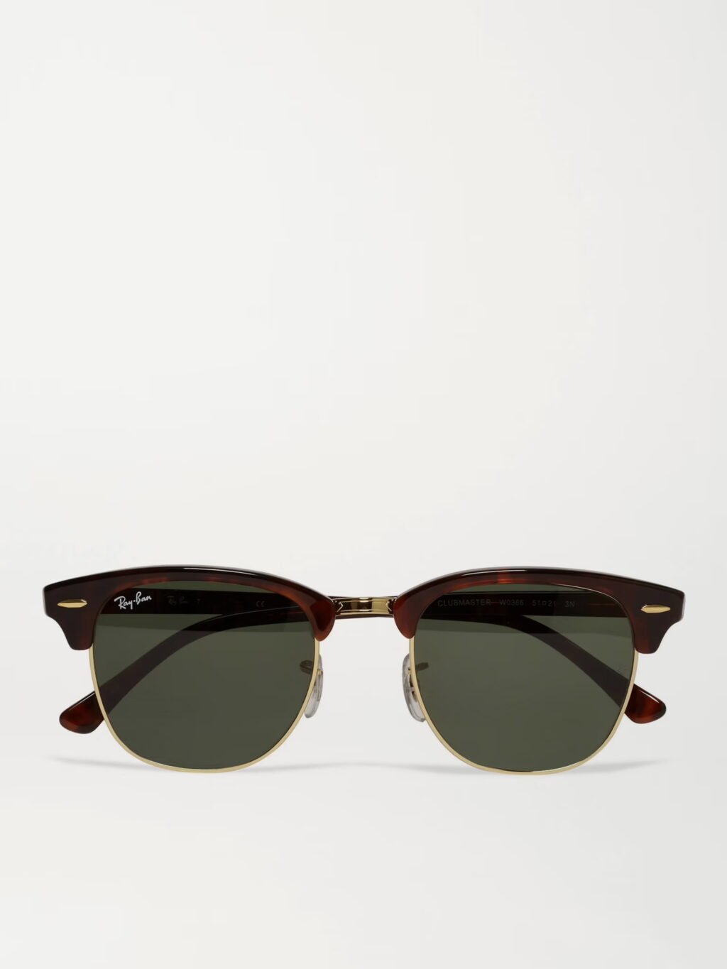 Den klassiska modellen ”Clubmaster” har burits av kulturella ikoner i årtionden. Denna version kombinerar sköldpaddsmönstrad acetat med guldfärgad metall för ett elegant intryck.
